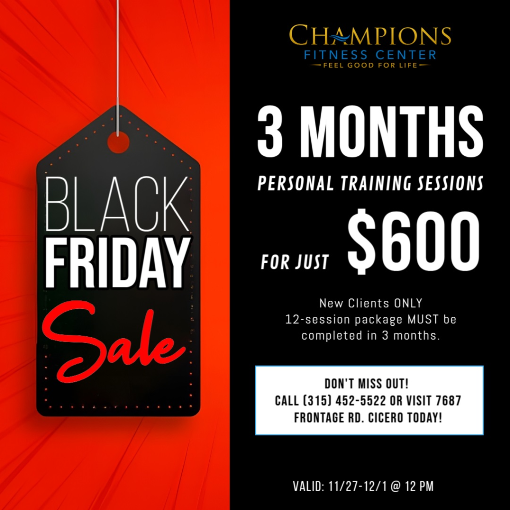 LIMITED TIME OFFER: Take advantage of Champions Fitness Center‘s Black Friday Personal Training Special! ![]()